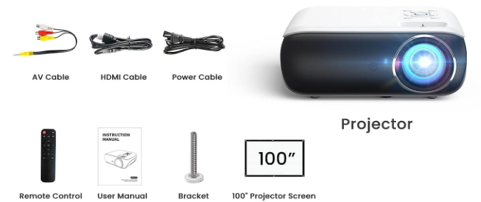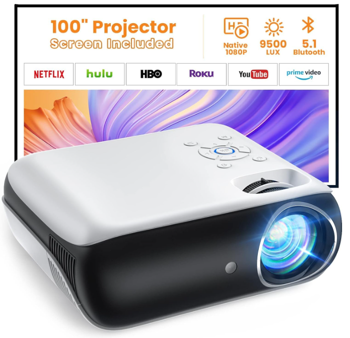 - Native 1080P Full HD Resolution: The projector is an excellent device that allows you to watch HD movies, with 1920*1080 native resolution, excellent 9500L brightness, and 10000:1 high dynamic contrast ratio, providing Sharper, brighter, and richer images! (Portable Projector 100'' Screen Included )